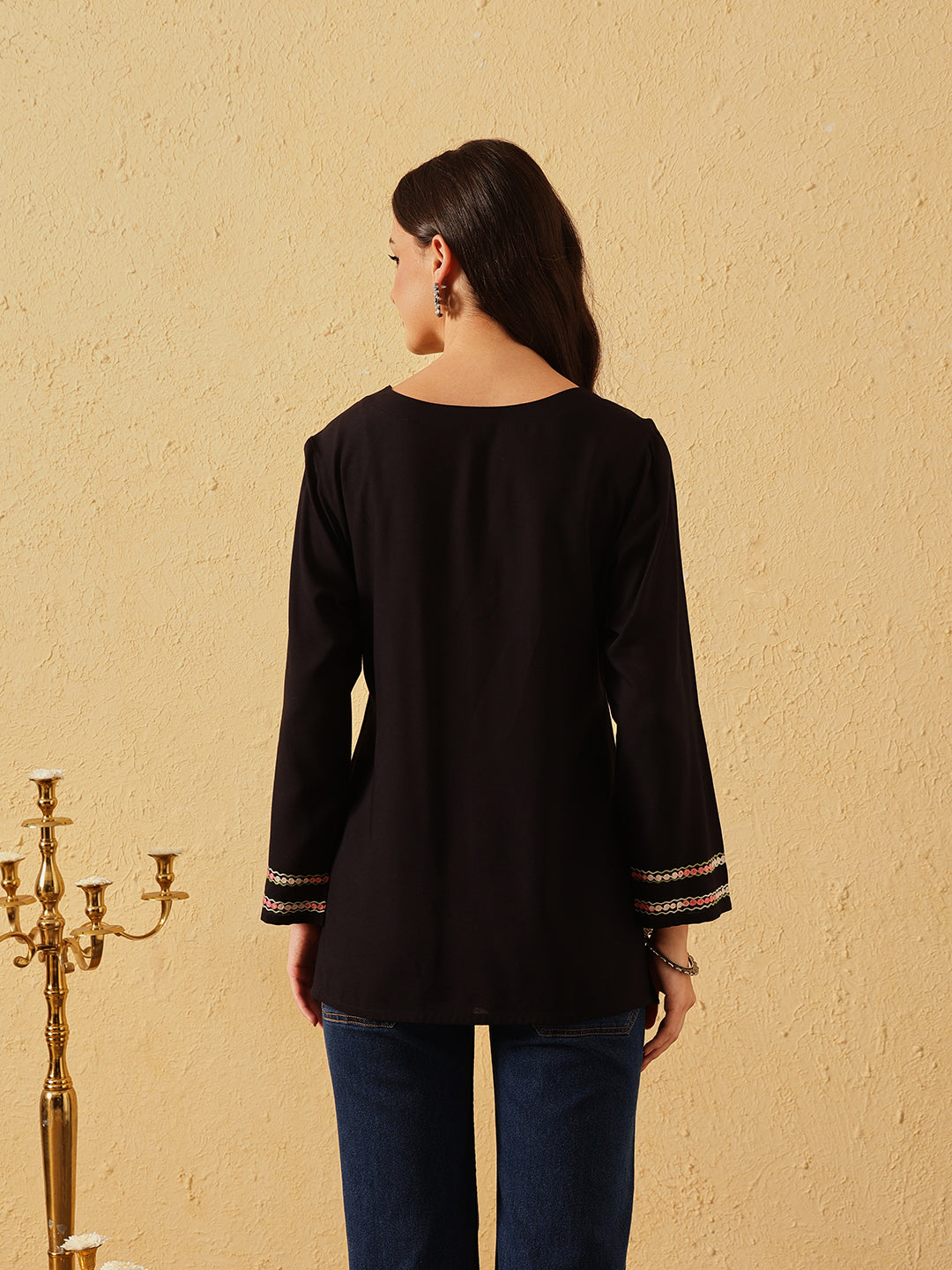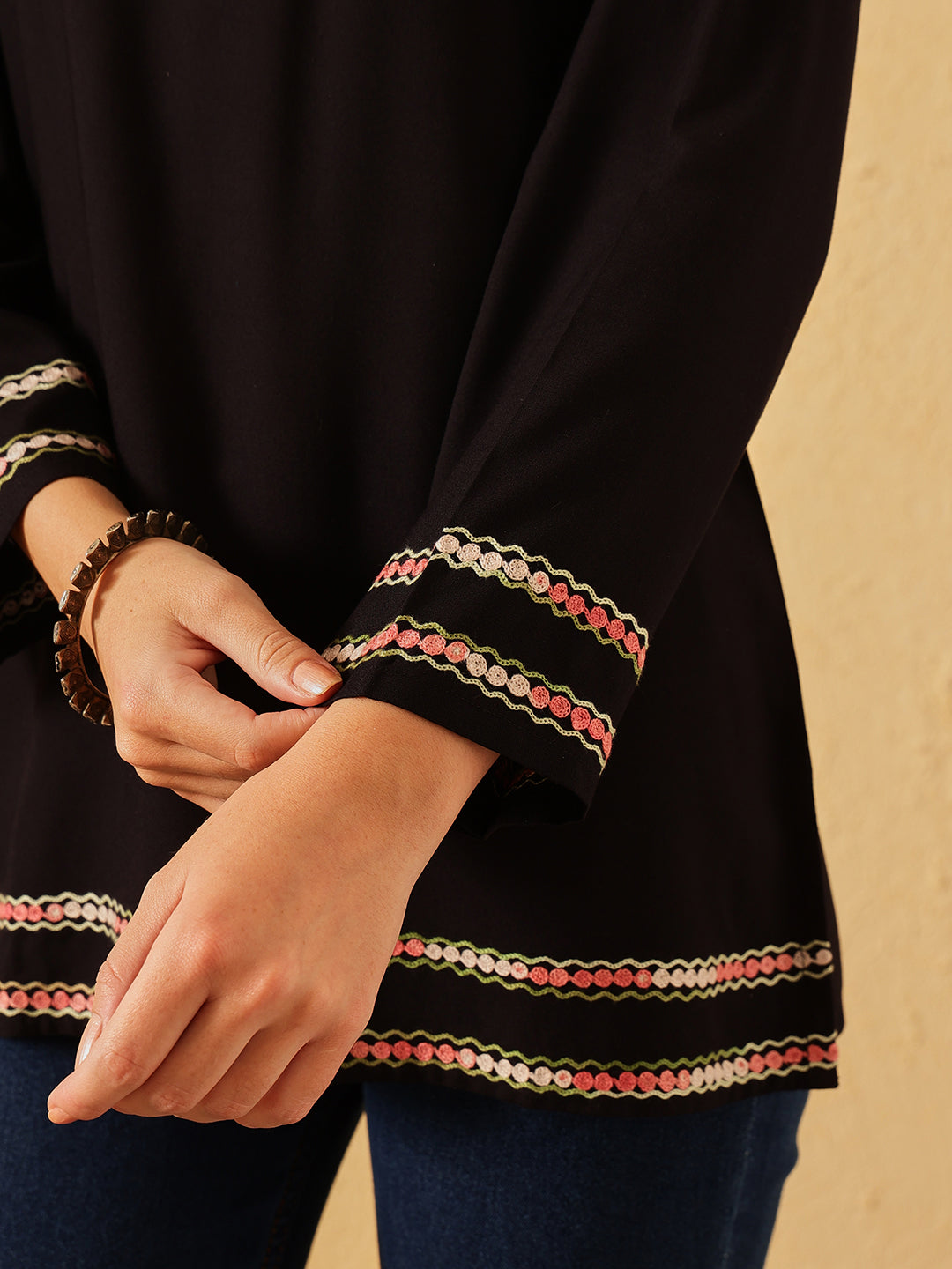 Qazmi Women's Amina Kashmiri Embroidered V-Neck Short Kurti