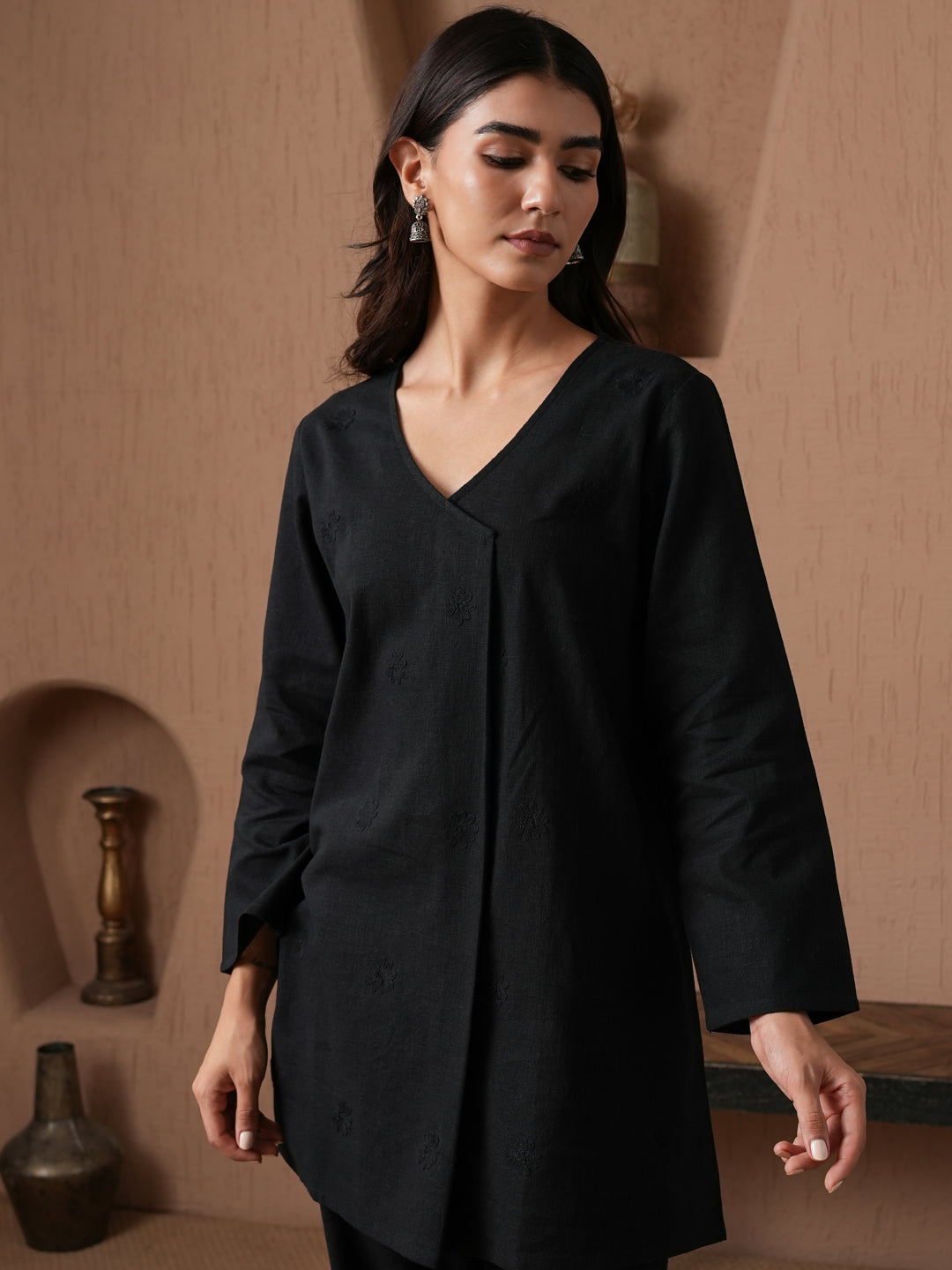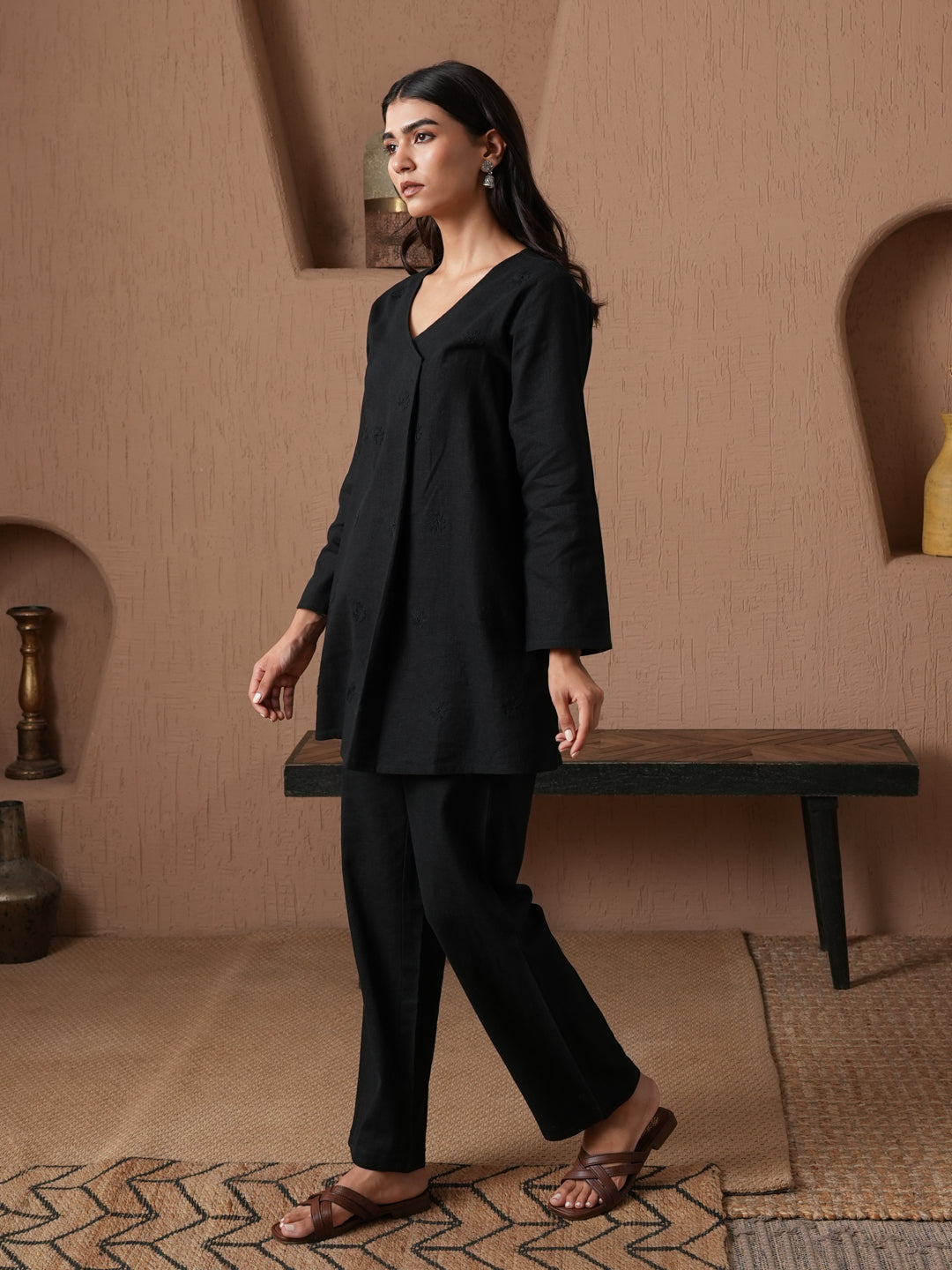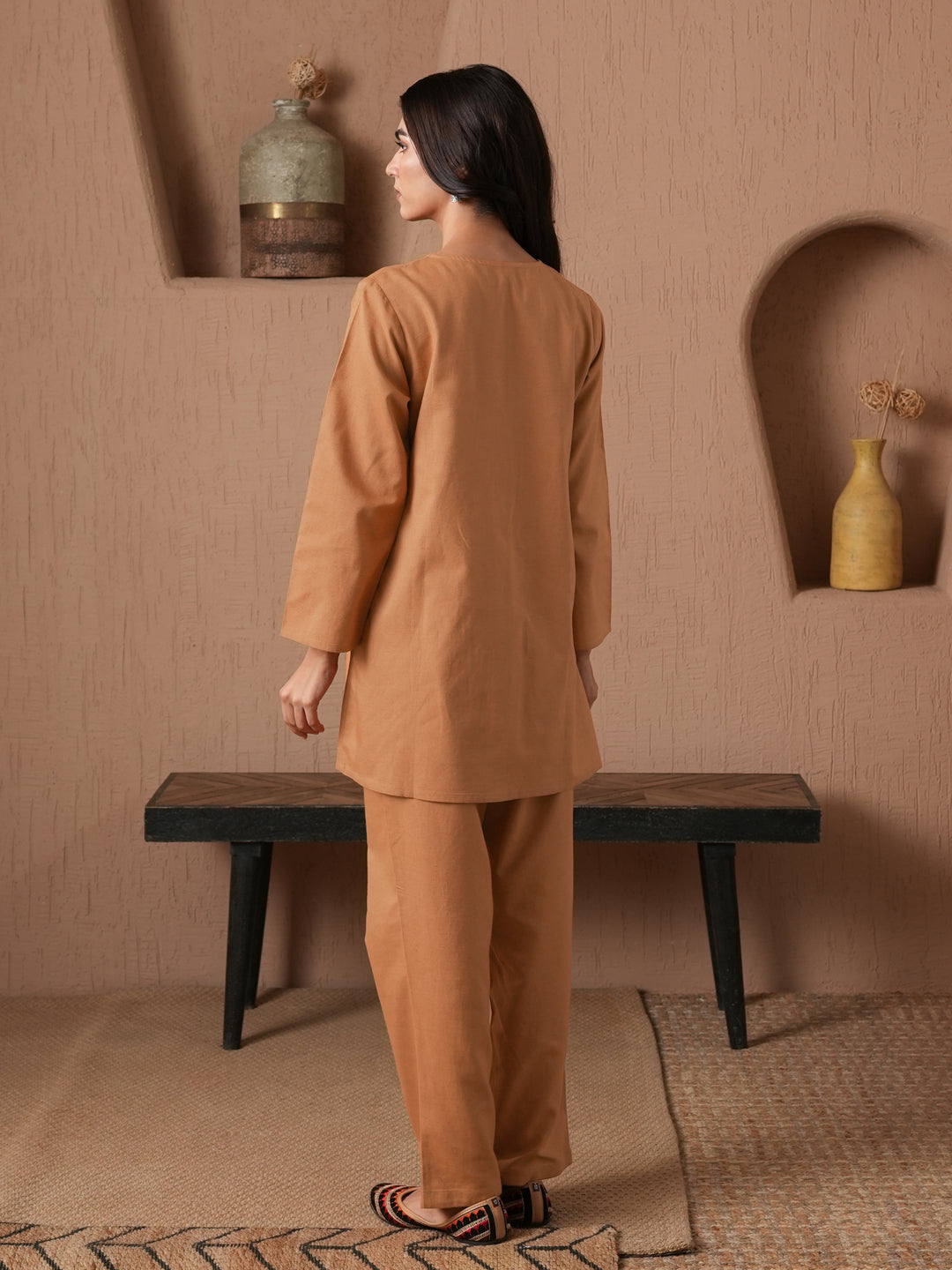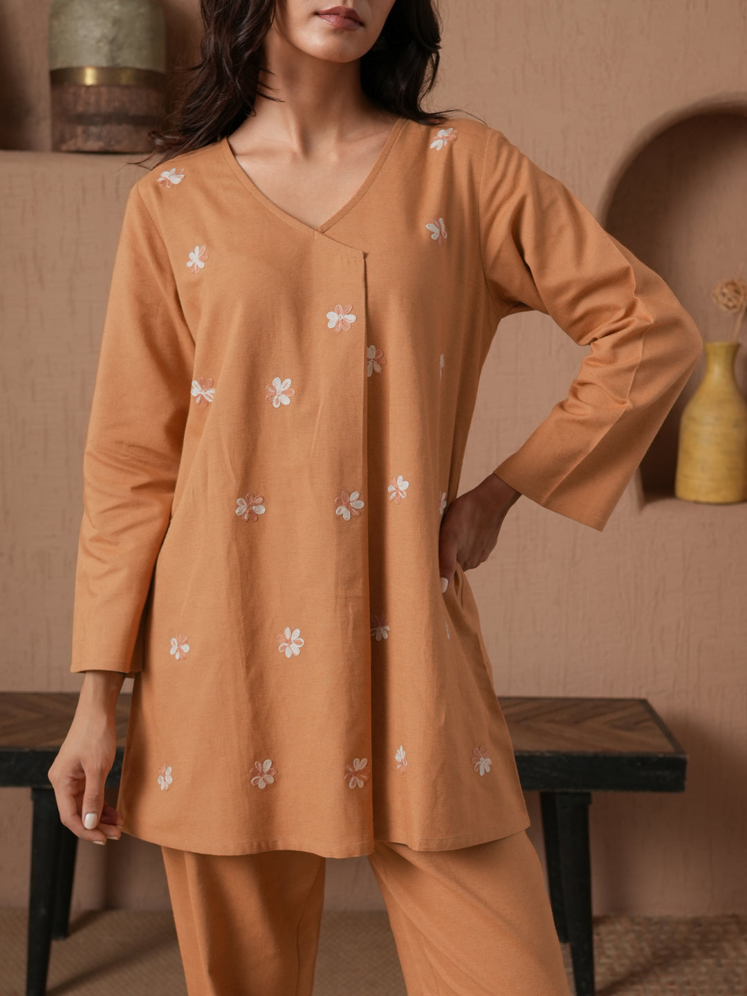 Qazmi Women's Cotton Linen Kashmiri Aari Work CoOrd Set