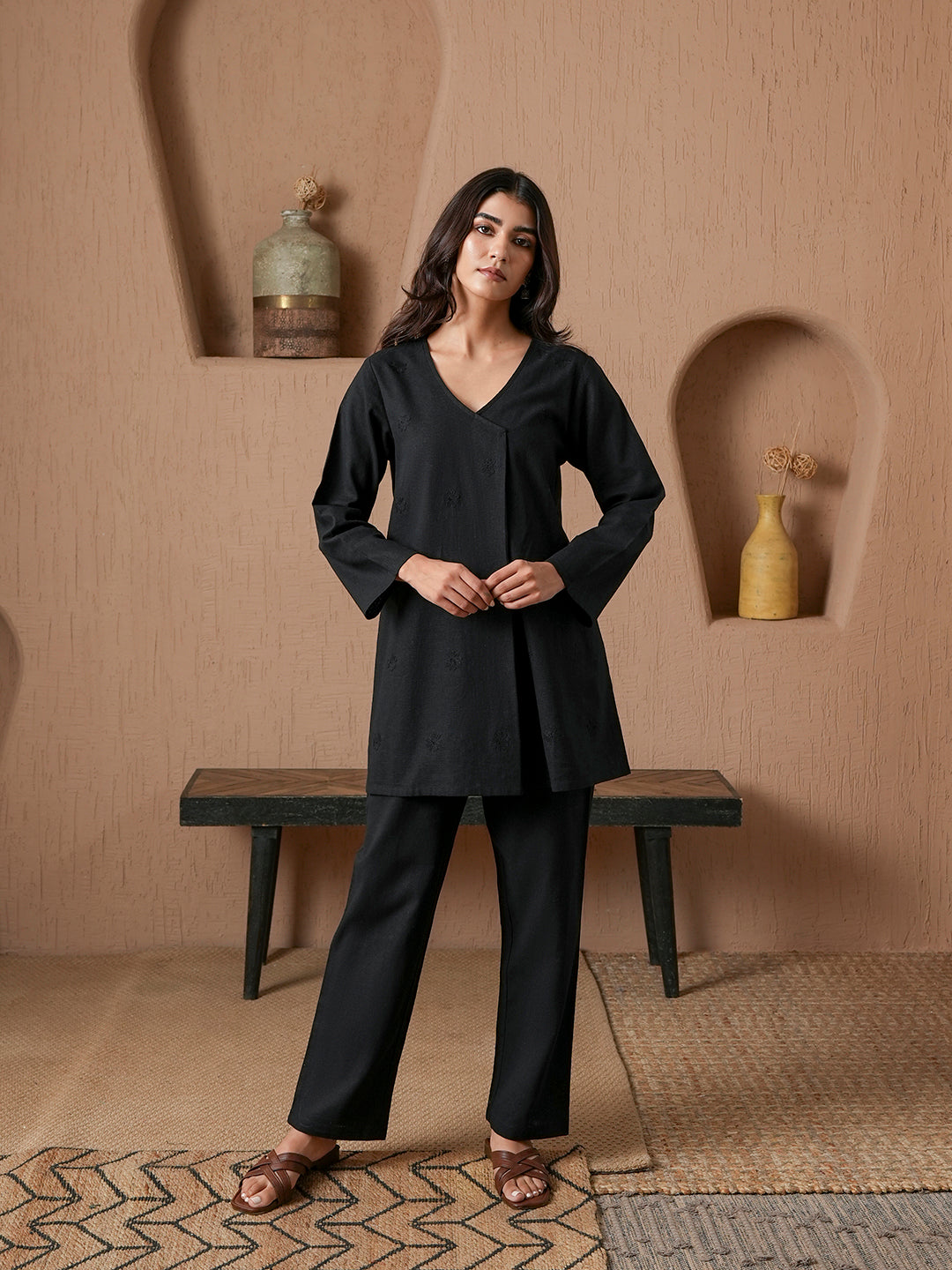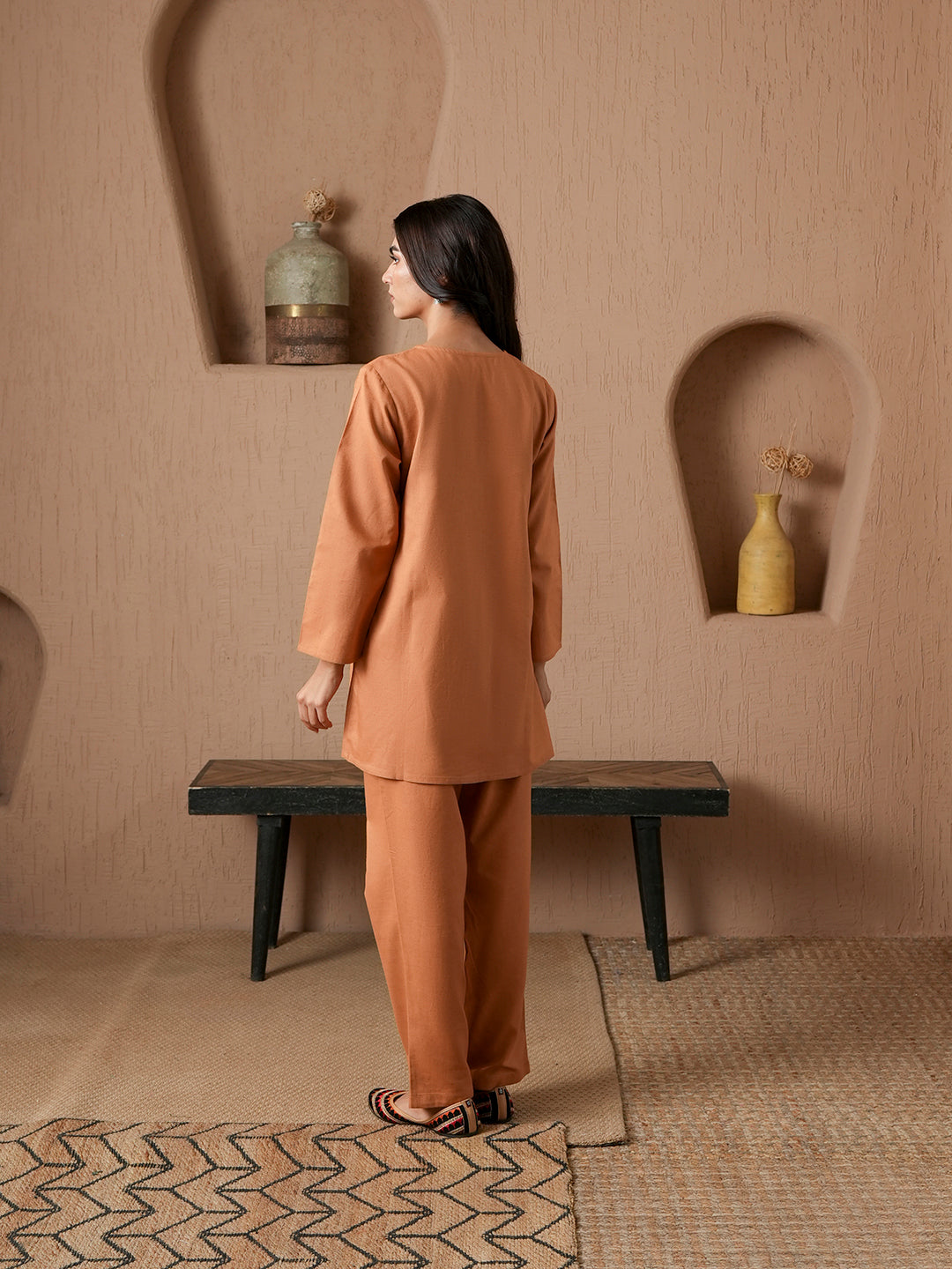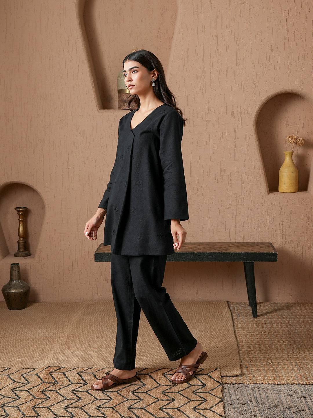 Qazmi Women's Cotton Linen Kashmiri Aari Work CoOrd Set