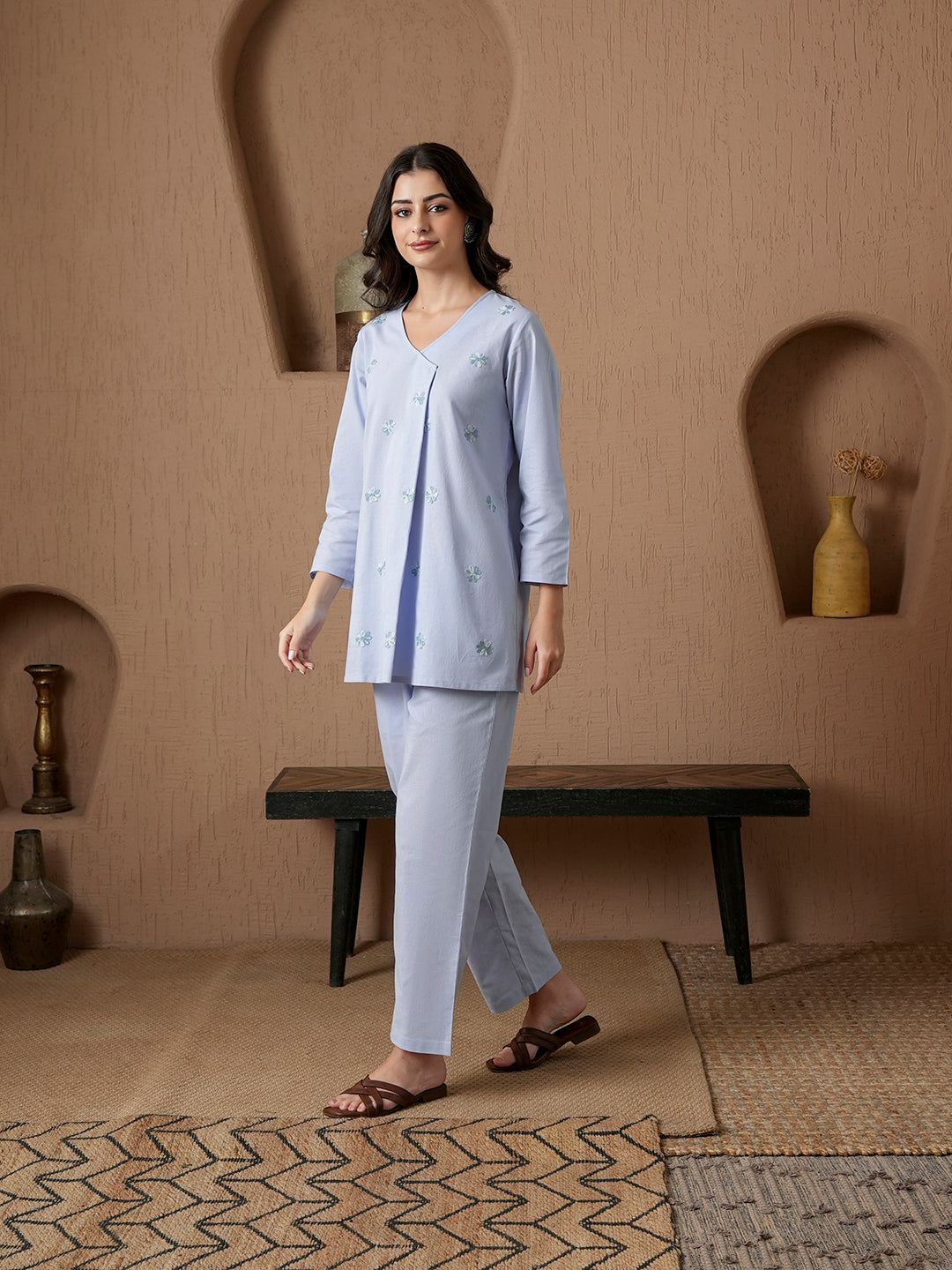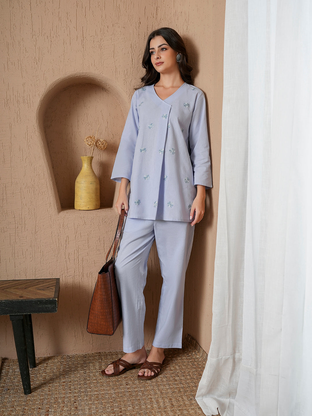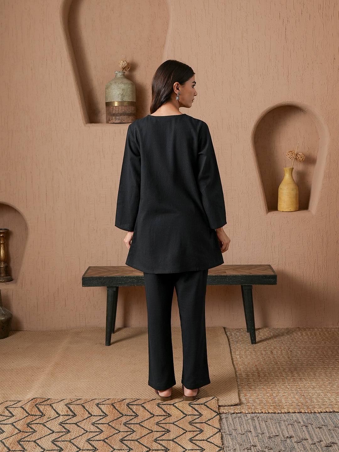 Qazmi Women's Cotton Linen Kashmiri Aari Work CoOrd Set
