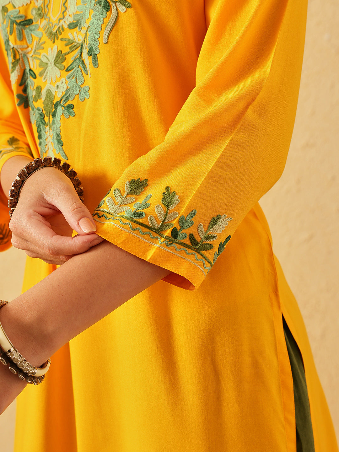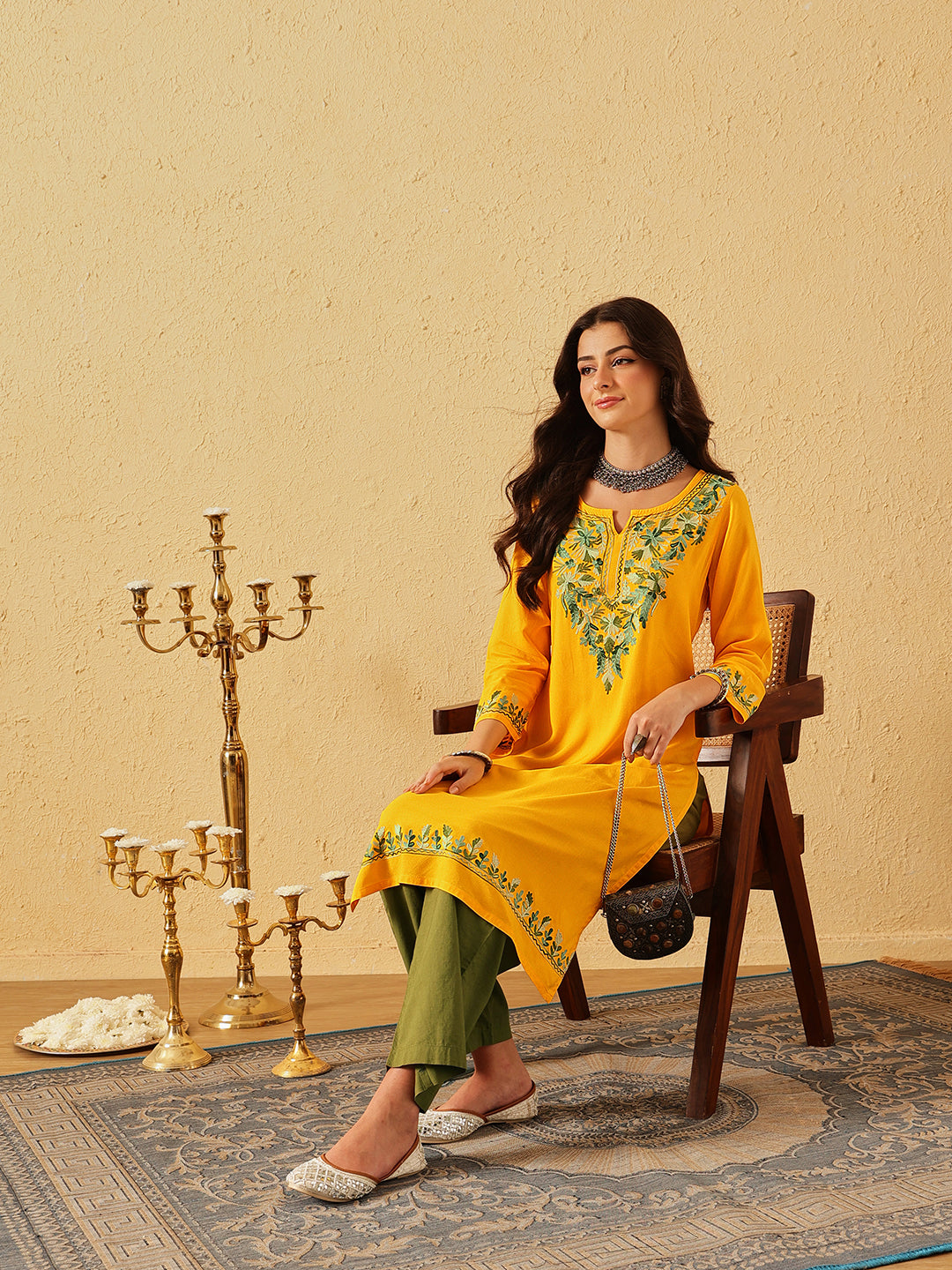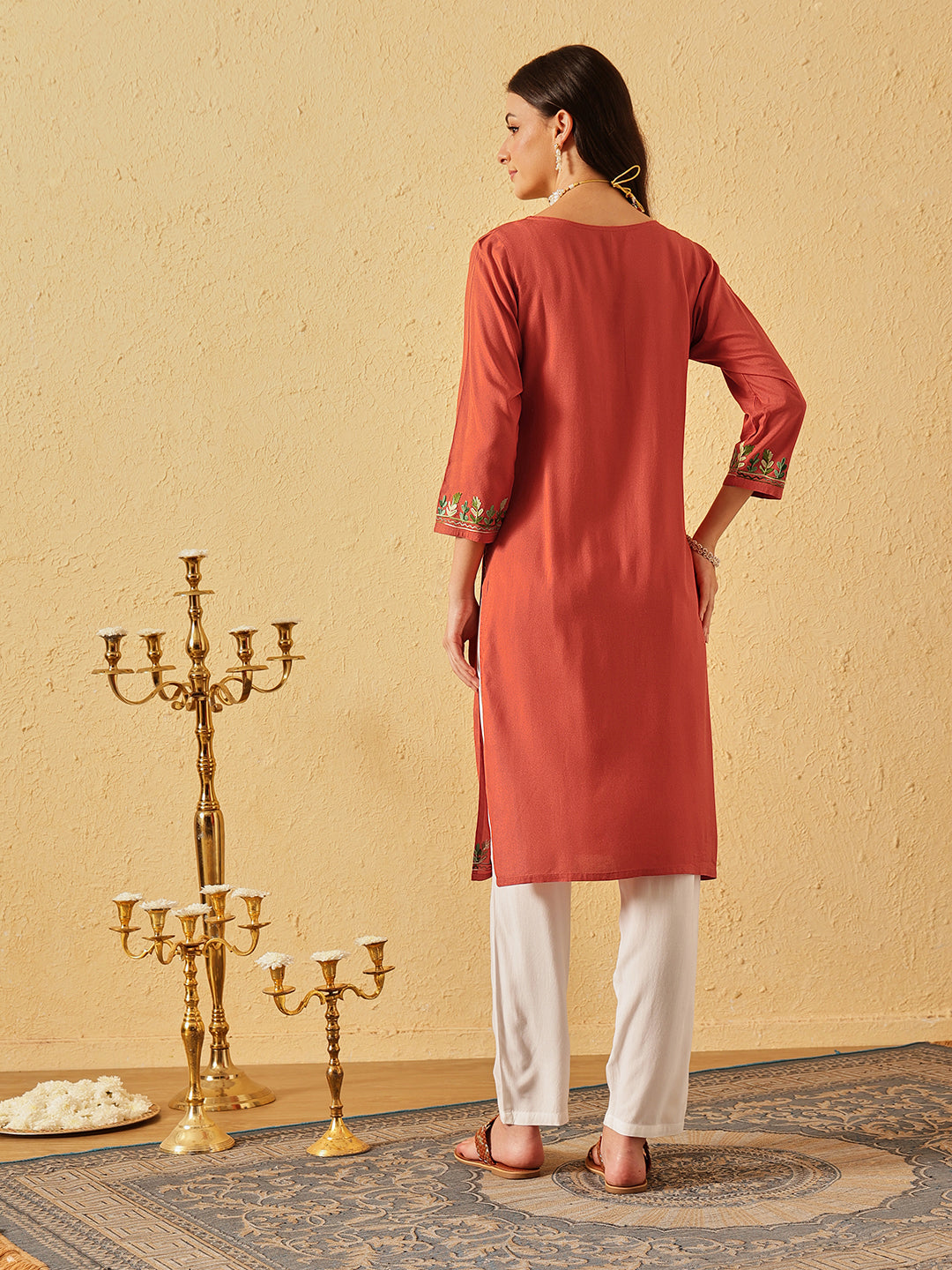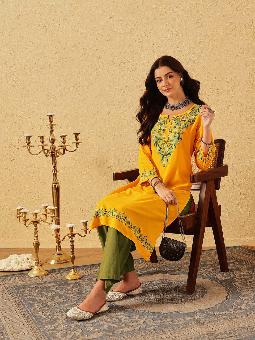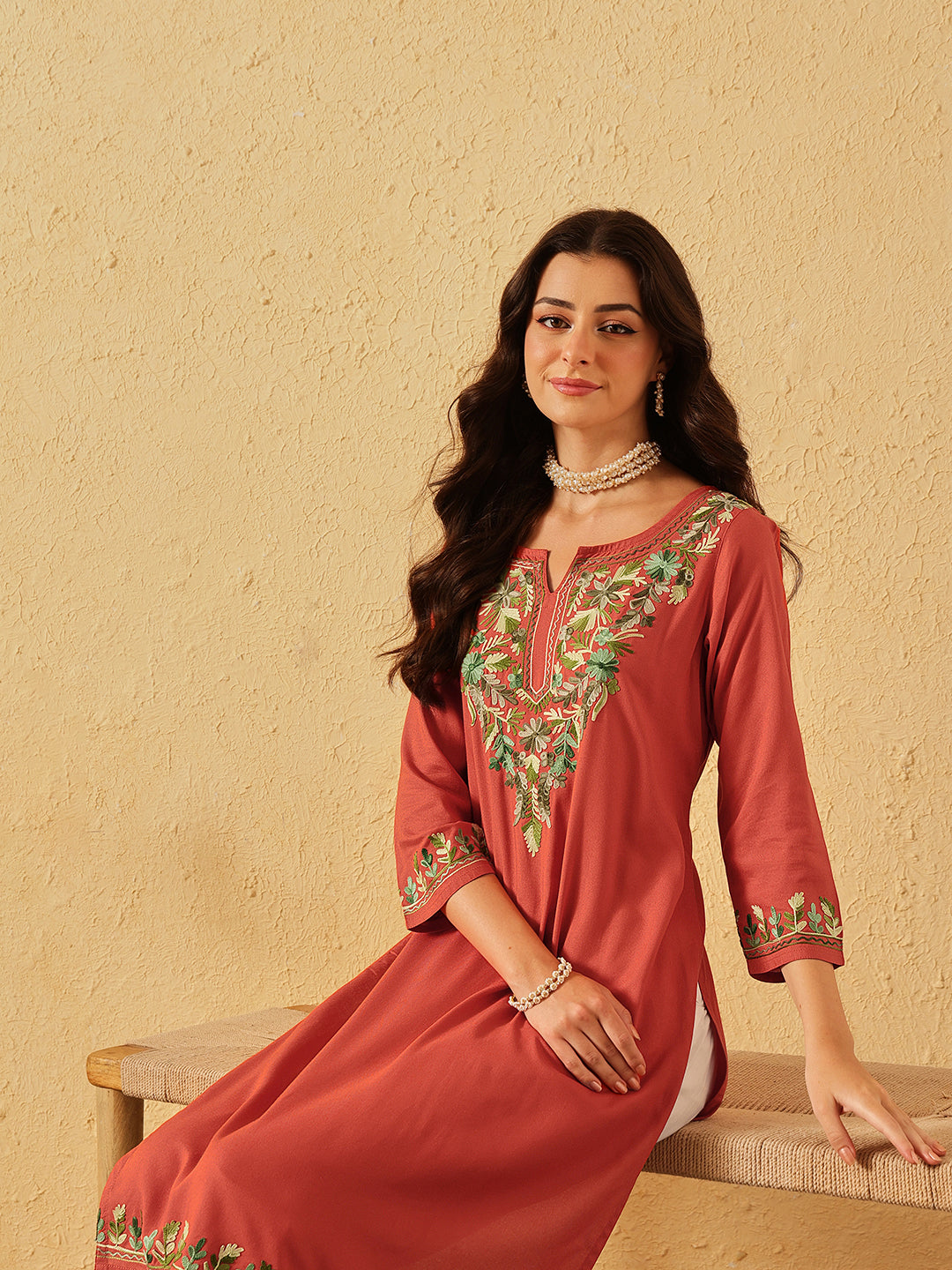 Qazmi Women's Noor Kashmiri Aari Work Straight Kurta