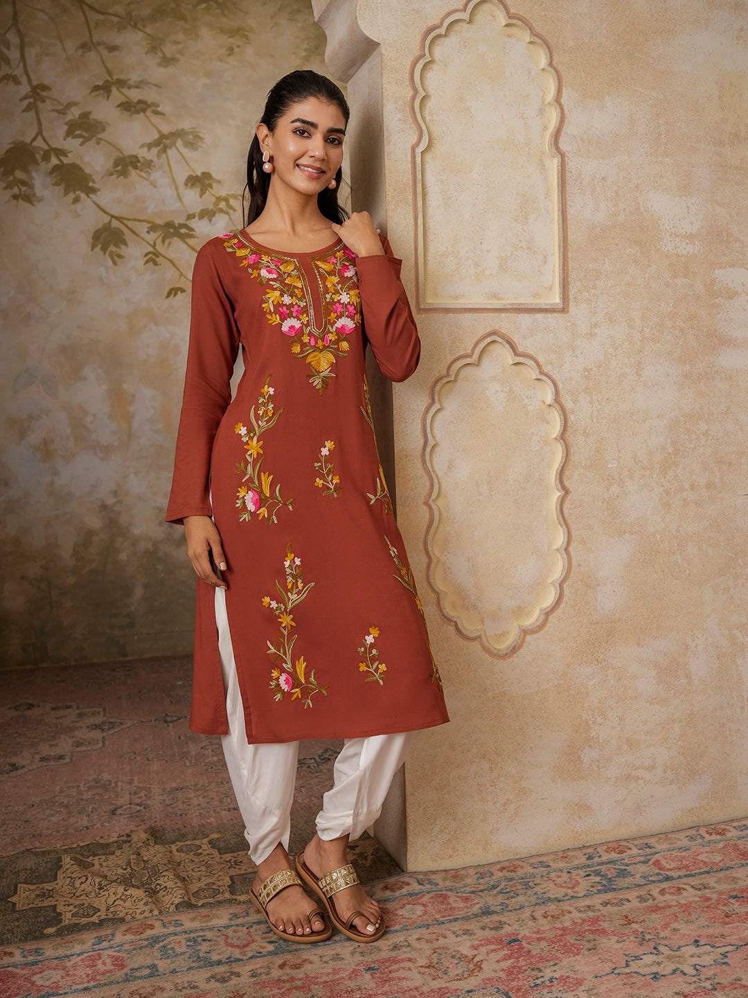 Qazmi Women's Sahar Kashmiri Aari Work Straight Kurta