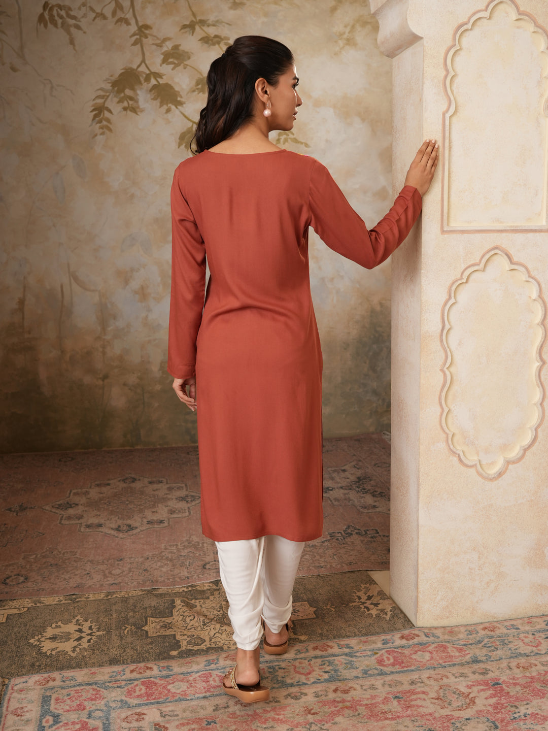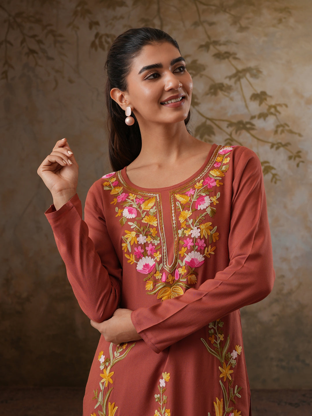 Qazmi Women's Sahar Kashmiri Aari Work Straight Kurta